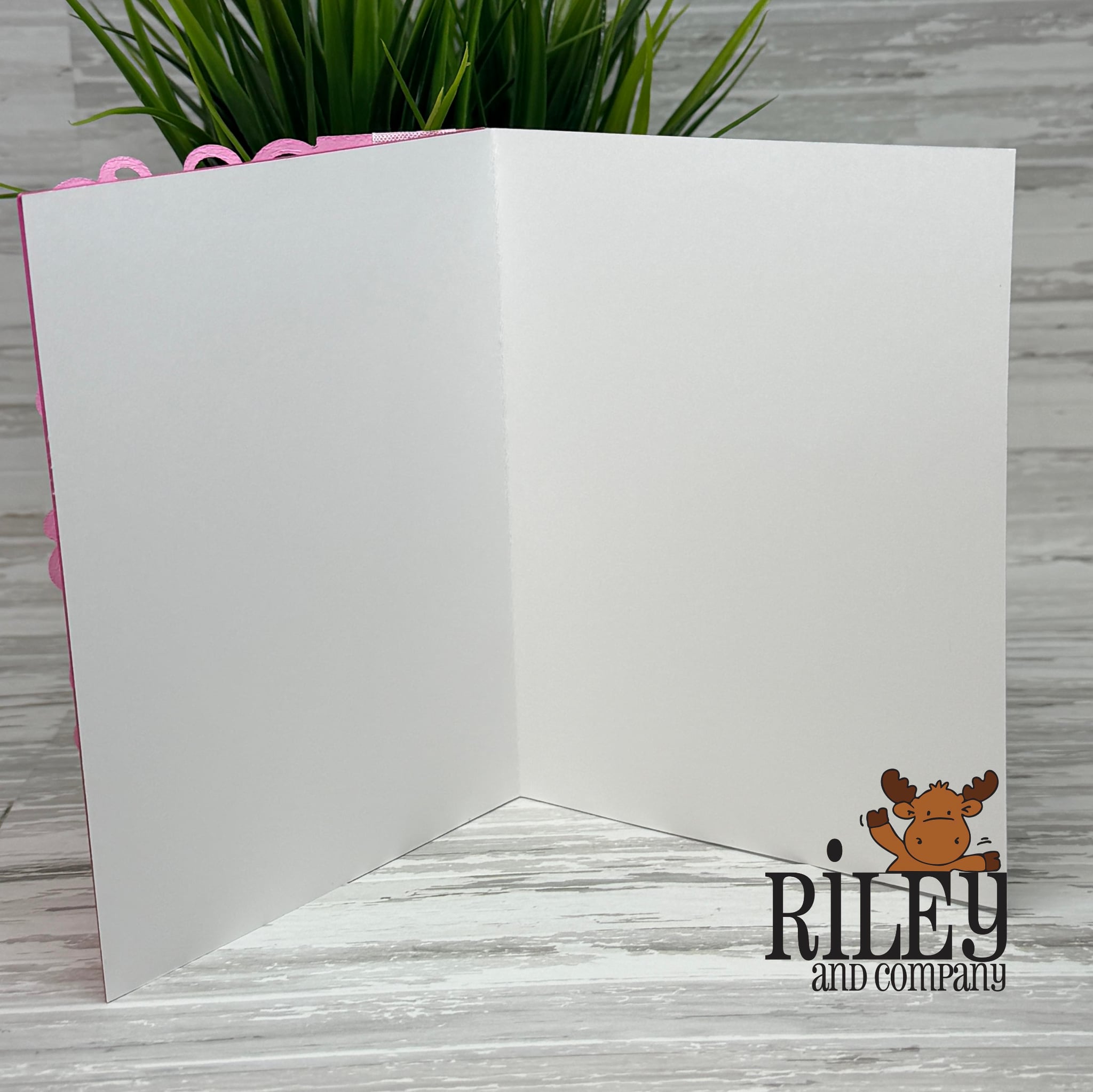 Quick Instructions for assembly. Fold the tab on the left side of the light pink overlay piece and glue just the tab behind the bright pink piece. This will create your overlay. Then, glue this entire piece to the front of the white card. Glue the colored eggs behind the eggs on the overlay and add the words.